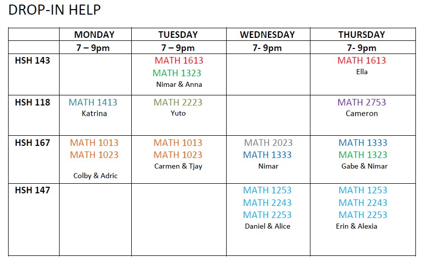 DROP IN HELP: If you need help with an assignment question, please attend a drop-in shift during the week. No reservation required!